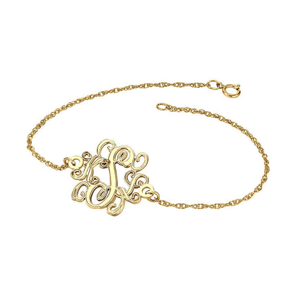 A timeless vine script monogram bracelet is always the perfect gift. Monogram measures 20mm (.78") and is centered beautifully on a stylish 7 1/2" bracelet (including monogram). Available in gold plated, sterling silver with rhodium plating, 10K gold and 14K gold.
